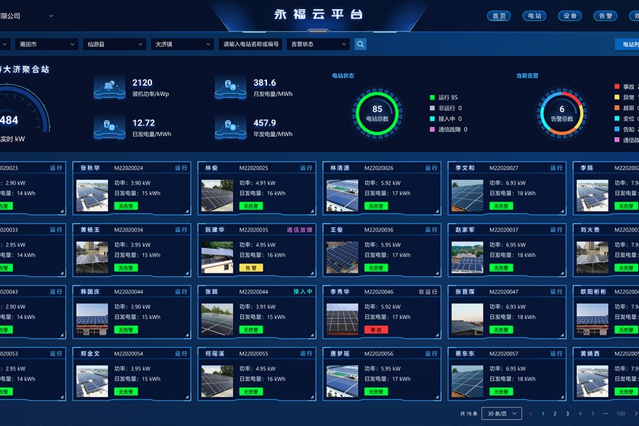 包括光伏云平台、新能源集控与智能运维一体化平台等核心产品,提供站端监控、区域集控、集团管控一站式解决方案,助力新能源投资商轻松管理光伏资产,提升资产收益。